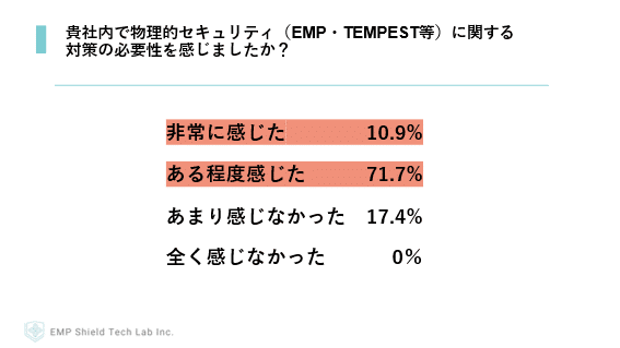 近年、サイバーセキュリティに加え、電磁波による物理的リスクへの対応が求められています。当社は、講演参加者を対象としたアンケート調査を通じ、市場や組織がどのように課題を認識しているかを数値化しました。